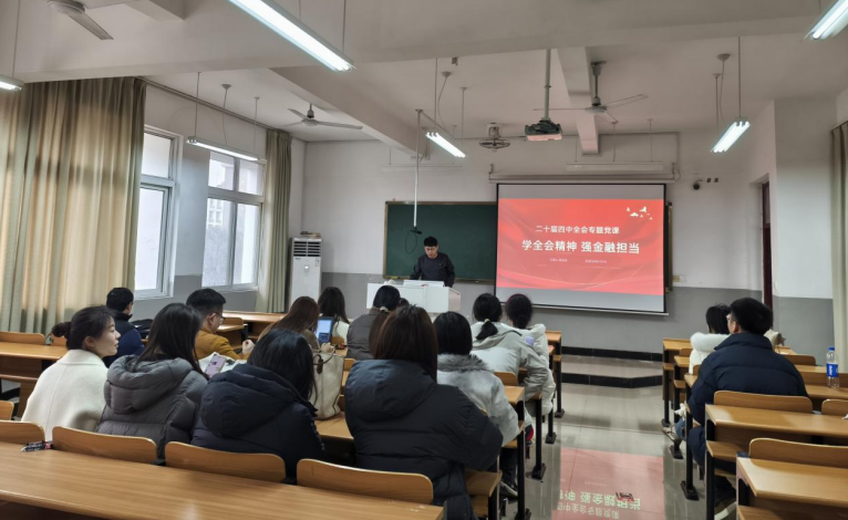 为深入学习贯彻党的二十届四中全会精神,锚定“十五五”时期发展部署,12月10日,经济与金融学院教师党支部于笃行楼C201教室举办“学全会精神,强金融担当”专题党课。活动紧扣“为党育人、为国育才”使命,将全会精神与金融学科特色、育人职责深度融合,推动党的创新理论扎根教学科研一线,引导党员教师以金融担当服务高质量发展。