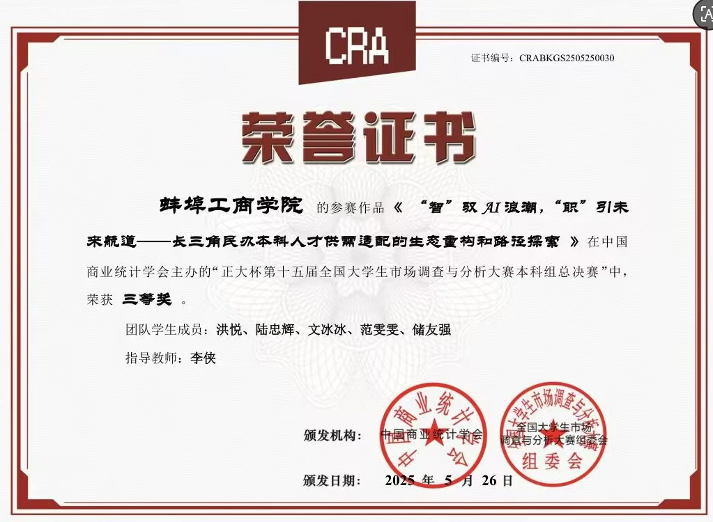 近日,第十五届全国大学生市场调查与分析大赛暨我校第七届赛事圆满落幕。本次大赛由中国商业统计学会主办,我校经济与金融学院和创业学院承办,旨在提升学生的市场调研能力、数据分析素养和团队协作精神。