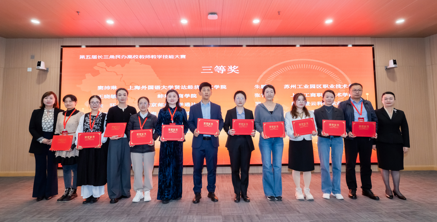 本届大赛由沪苏浙皖四省(市)教育厅联合主办,设置文科、理科、工科、艺术课程、思政课程5个赛道以及10个职称组别,吸引了长三角地区128所民办高校参与竞争。优异成绩的取得,得益于“教师潜心钻研”与“学校系统赋能”的双重推动。备赛期间,王晓敏老师全身心投入,反复打磨课程实施大纲、教案设计与教学创新报告,精心雕琢教学设计的各个环节,力求在课堂教学展示中实现最佳效果。学校构建了有力的支撑体系,组织校内外专家团队对参赛材料与课堂教学进行了多轮精准指导和模拟演练,为参赛水平的全面提升奠定了坚实基础。