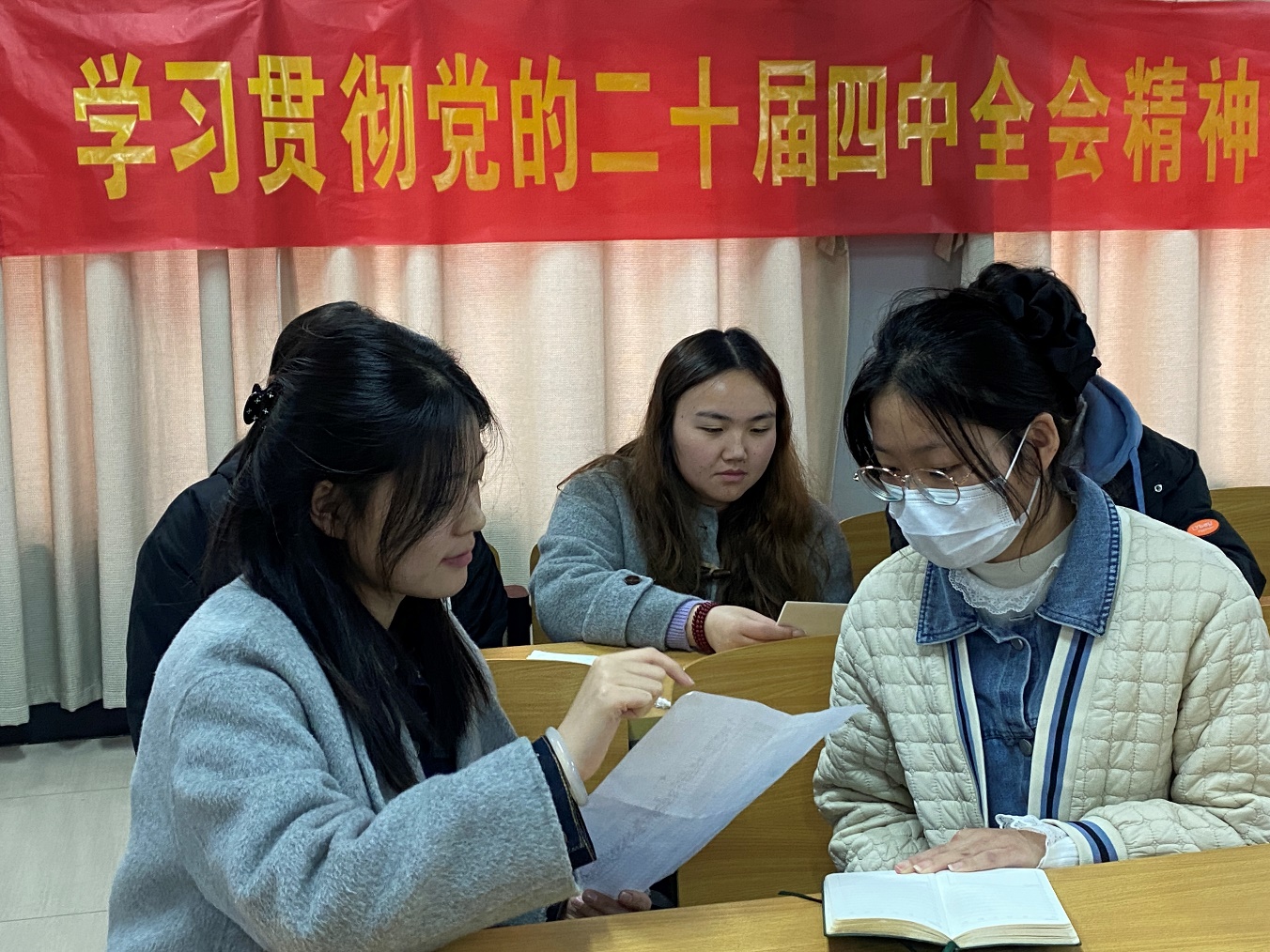 随后,各学习小组在党员活动室进行分组交流。讨论紧扣“青年学子践行全会精神”主题,聚焦学业规划、能力提升与职业发展等具体实践。