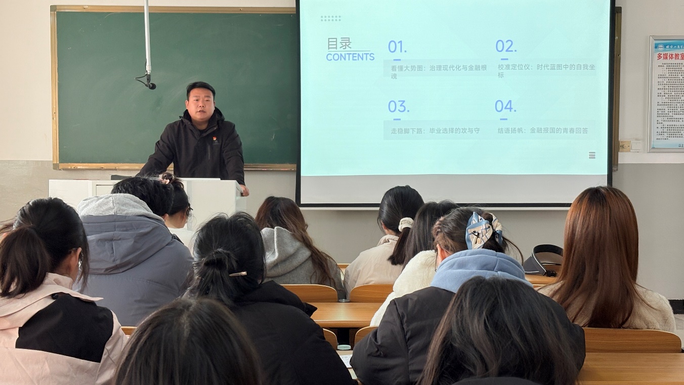 党课从“看懂大势”“校准坐标”“走稳前路”三个方面展开。方杰与同学们一起分析,治理现代化为金融行业奠定了法治化、市场化、透明化的发展基础,这要求未来的金融人不仅要掌握专业技能,更要树立服务实体、防控风险、推动创新、心怀家国的职业观。他鼓励大家,把人生规划嵌入国家治理现代化进程,无论是投身科技金融、绿色金融,还是扎根普惠金融、金融监管,都能在时代需要的地方找到属于自己的舞台。