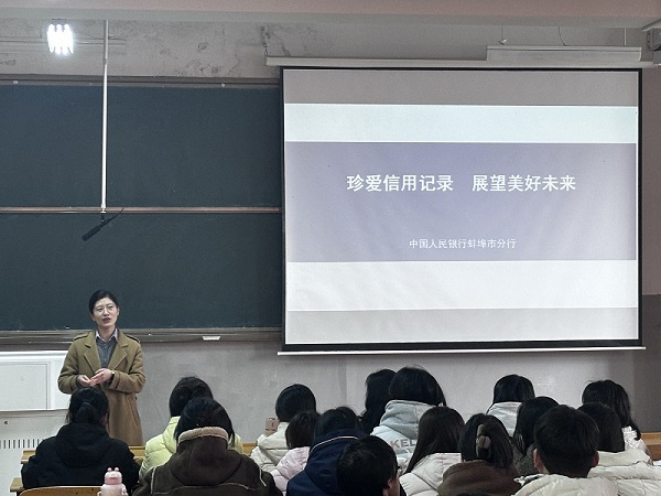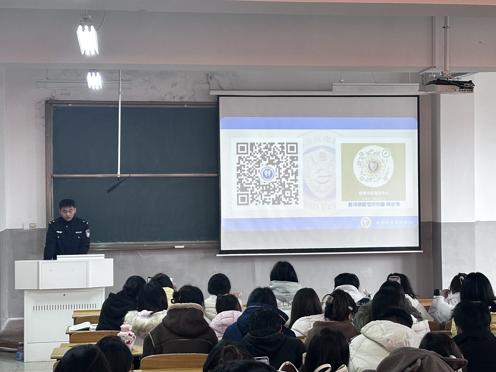 为深化《中央银行学》课程教学改革,实现理论讲授与实践应用相结合,同时引导学生树立正确金融观念、筑牢反诈安全防线,12月11日上午,学院特邀中国人民银行蚌埠分行征信业务负责人谷岩洁科长、卢巧杰老师和市反电诈中心杨宇韩警官走进课堂,为金融专业学子带来了一场兼具专业性与实用性的主题宣讲活动。